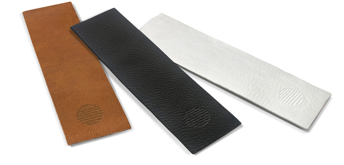 3 Tapes aus Leder in den Farben Coal, Snow und Cognac.